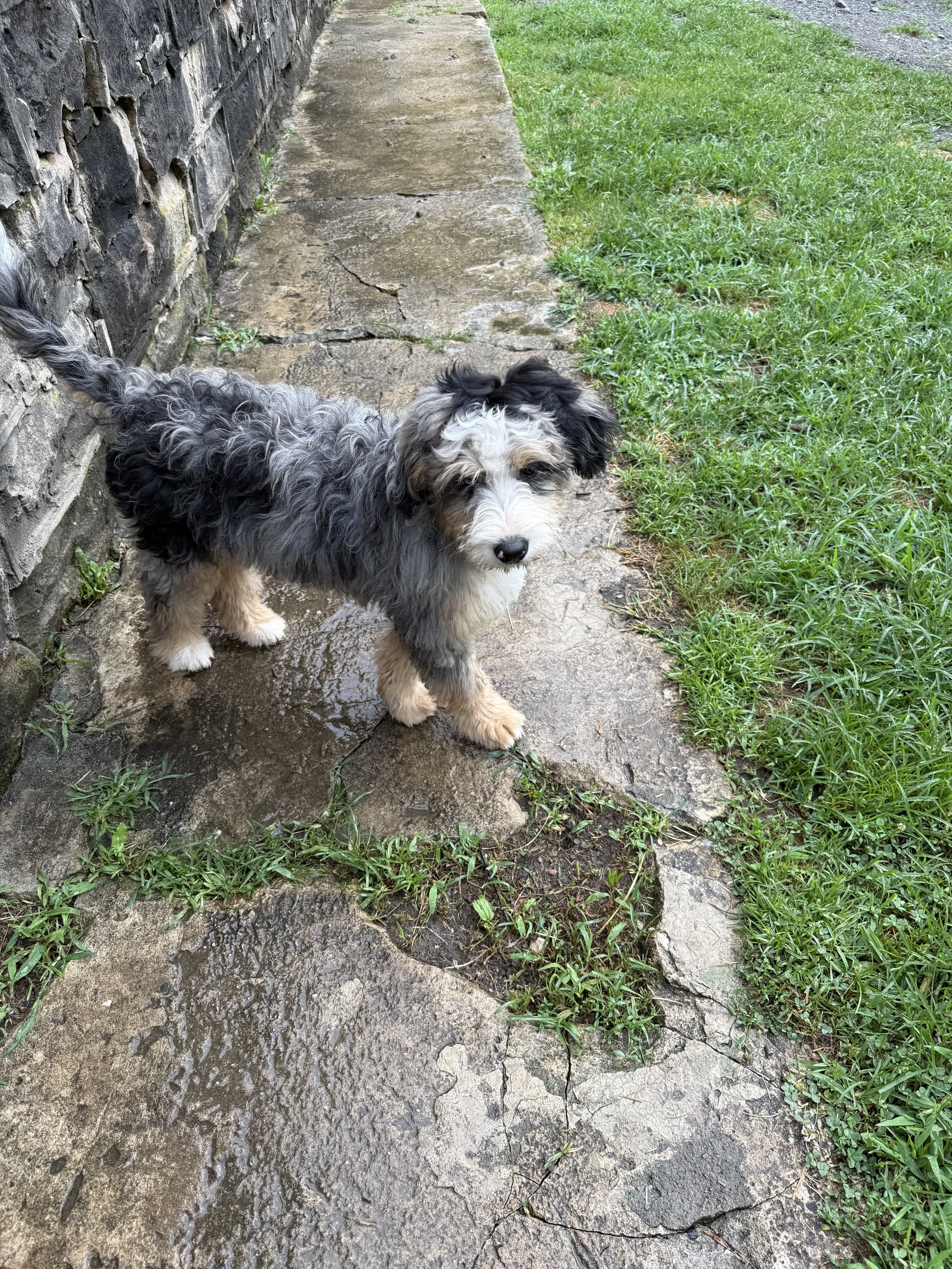River is a good girl and the definition of a perfect bernedoodle. She is friendly but not pushy, affectionate but not clingy, and she adores other dogs. River is just an all around, sweet natured dog that anyone would be glad to have. She also lives with Trainer Janice.